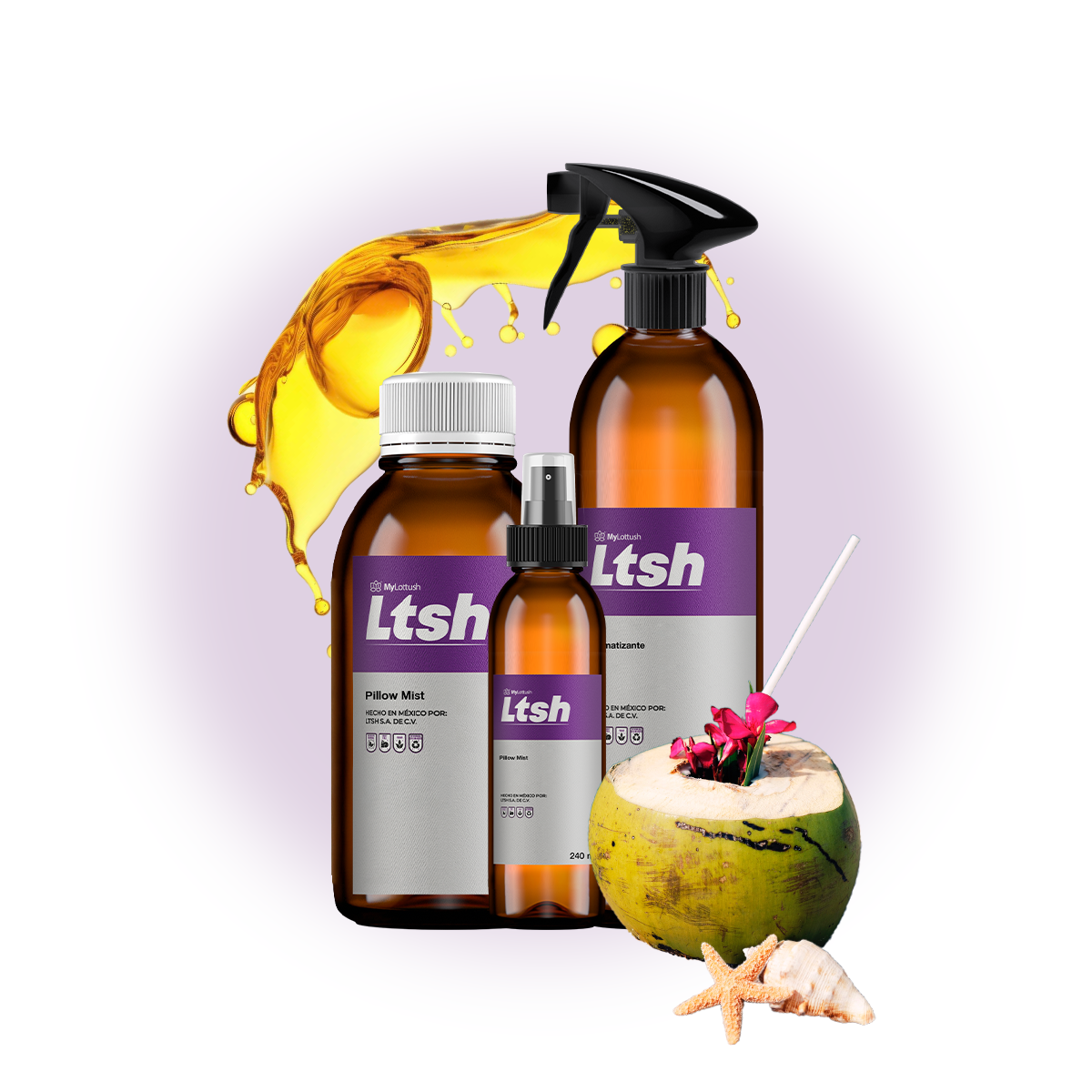 Combinación seductora de coco y vainilla, Aroma cálido, veraniego y relajante, Libre de Phtalatos y Parabenos, Certificación de calidad IFRA.